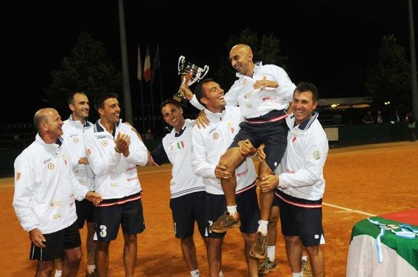 Il Capitano Giorgio Cavagna festeggia con la squadra