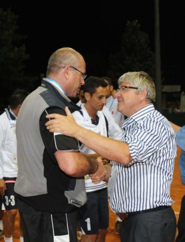 Barral si congratula con il DT del Callianetto Quinto Leonardi